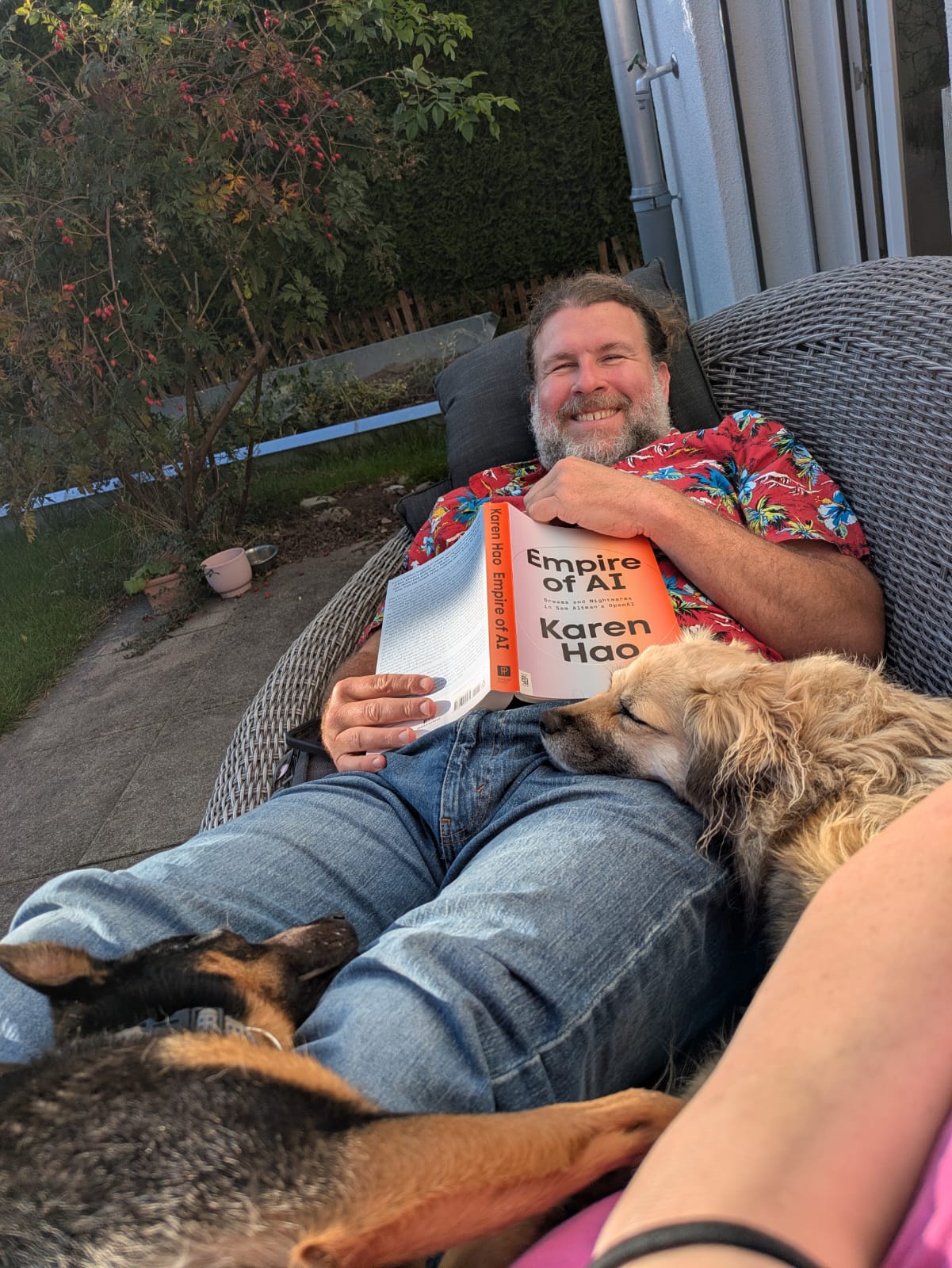 21 October 2025 - Adetswil Karen Hao's Empire of AI is more than just a corporate history of OpenAI with an accompanying history of its cofounder and current CEO Sam Altman. It's also a polemic about the industry as a whole. There's a chapter on the the humans in poor countries in Africa receiving less than a living wage to help train the models' English language skills. There's a chapter about water resources be monopolized by data centers in South America to the detriment of locals, who get grey water or or wastewater in their taps while the data centers suck up the potable water. Of course there is the corporate history as well: Elon Musk's role in founding the company and then his disillusionment with Altman's manipulative dishonesty; the defection of some of the OpenAI leadership and staff to form Anthropic because they don't trust Altman with artificial general intelligence (AGI) if it's ever created; the ouster and the reinstatement of Altman when even the board of OpenAI decided he was dishonest and hiding things from them. Hao uses all this to temper the excitement one gets reading about the incredible success of OpenAI and its breakout consumer product, ChatGPT. Empire of AI is a timely and well-researched book.