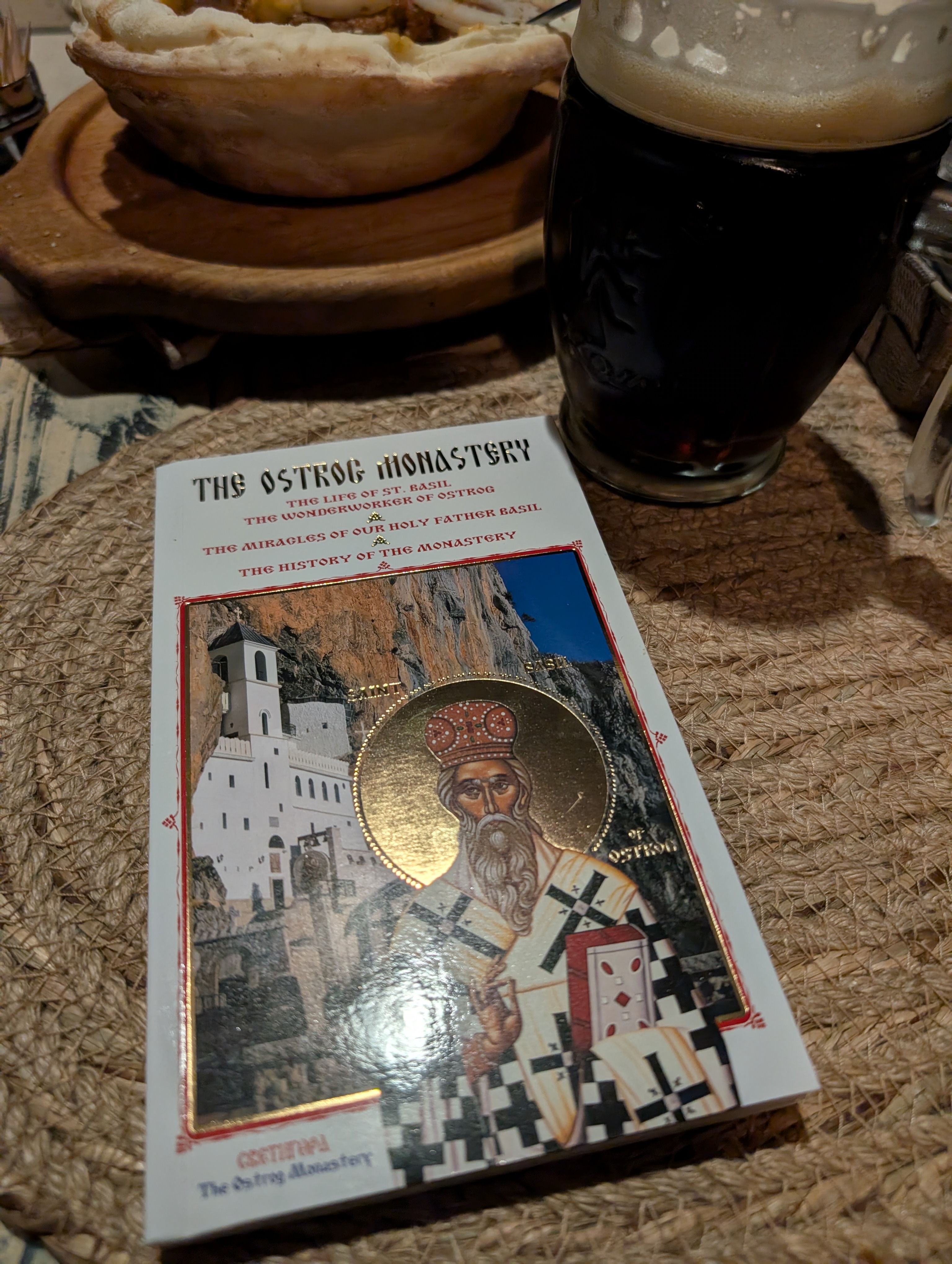 10 November 2025 - Kotor I picked up this book in the Ostrog Monastery a couple days back and it is an excellent companion to the trip with information I would not have otherwise known. The book is broken into three sections: the life of St. Basil, "miracles", and the history the of monastery. The middle section is basically worthless, but the testmonials reminded me of the one grandpa penned after his heart attack.