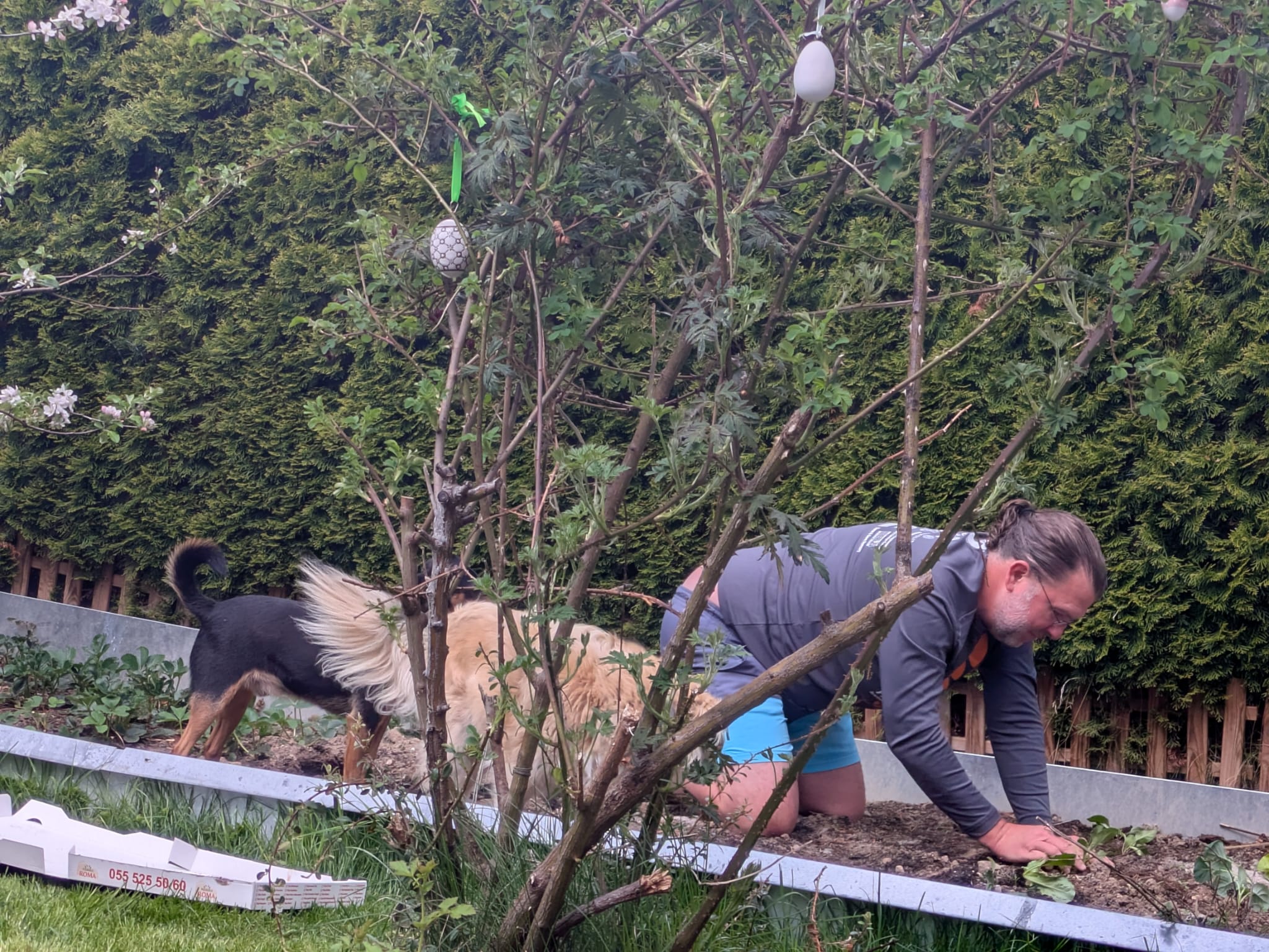 Adetswil Garden 202619 April 2026 Planted some things Iwona bought today (lettuce, broccoli, beets). Arugula, potatoes, and even more strawberries are also coming up.