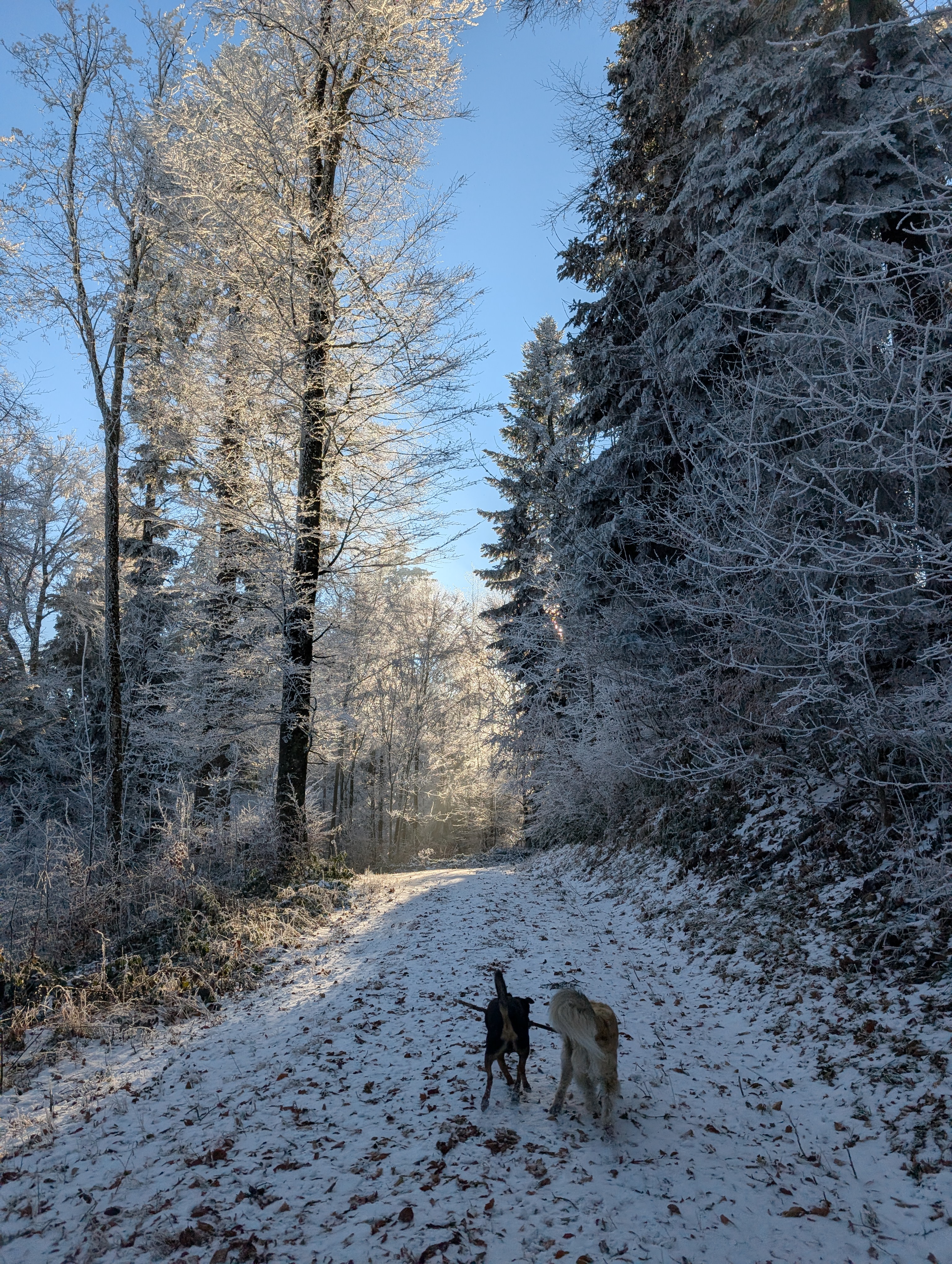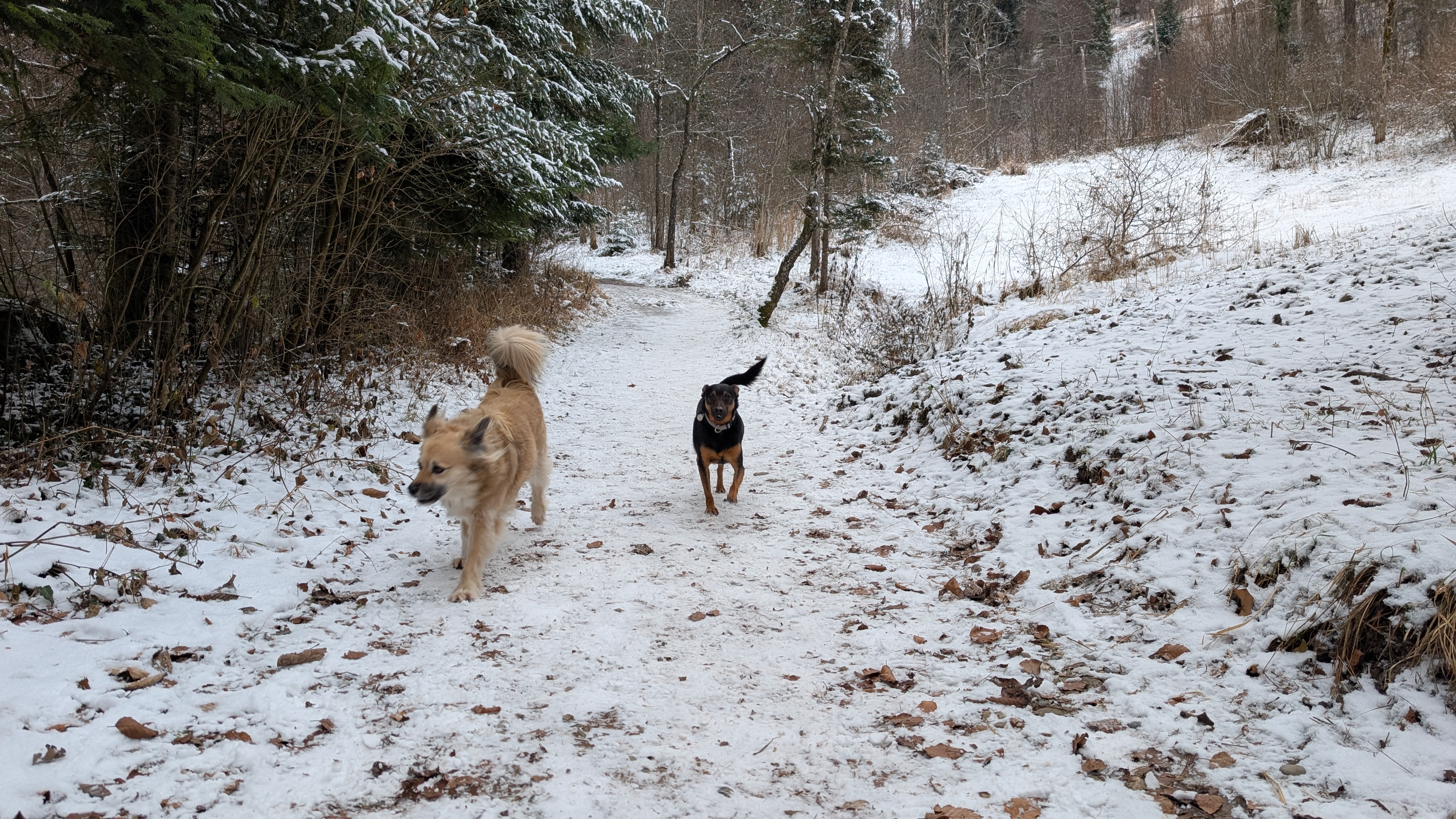 Today we went sledding in the deep newly fallen snow while the dogs hunted mice. 8 January 2026 - Wetzikon - 10 km In the morning I got to go skating before the weather turned. But this even was a clusterf$@k of a run. I knew it would be challenging when the snow turned to rain on the way down to Wetzikon from Bäretswil, but I brought my spikes. I had to pee, but the bathrooms were closed, so I waited for the woods. Not far into the woods I lost the spikes from both shoes in the slush of the trail. Then I fell. A lot. Nature called again, requiring a longer pit stop, but through it all my Lauftreff friends waited for me. "Today is not your day, is it, Bradley" laughed Daniela. On the way back we did find one of my spikes though 🤪 6 January 2026 - Erlenbach - Meilen - 10 km Another lazy midday run with Paula.