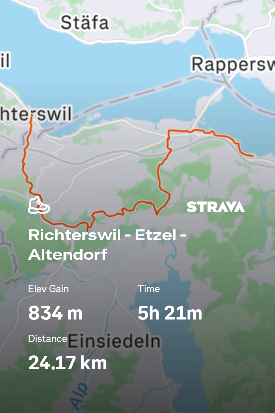 2 January 2026 - Richterswil - Altendorf - 24 km hike Up from Richterswil between houses and apartments to Schindellegi. Then along the Sihl uo to where it's joined by the Alp. This was followed by fields and forests climbing up to Etzel and then down to Pfäffikon. The down part from St. Meinrad I've down before. From there it's flat along the lakeshore to Altendorf. We will all sleep well tonight!