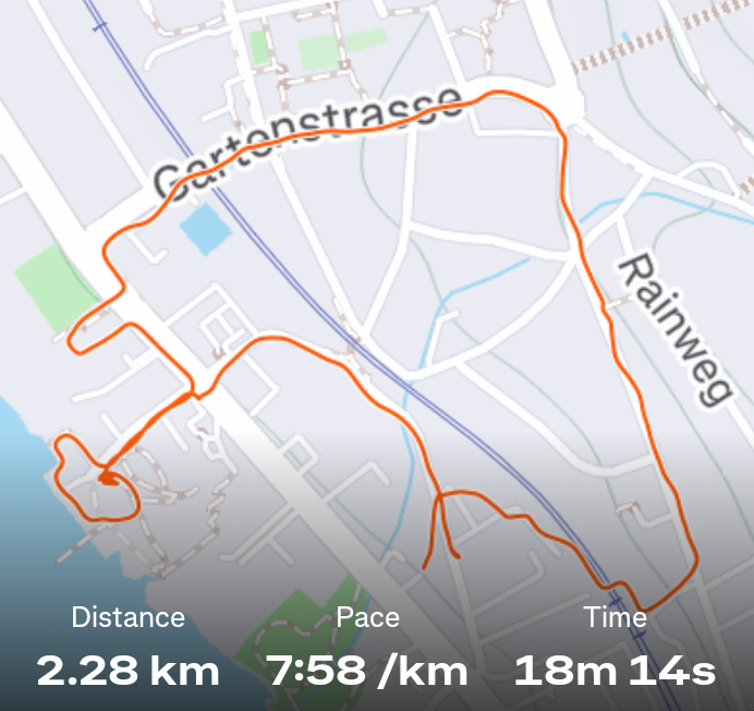 18 February 2026 - Küsnacht - 2 km Tested out the right knee this morning with the puppies. Downhill running still causes some pain, but I believe overall it was a success.