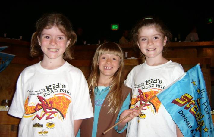 | Alora succeeding in her goal to run the mile in less than 10 minutes - she crossed the finish line as the clock struck 9:59. Brittan unfortunately got a cramp and finished in 11:36, which is still a pretty good time. I managed to snap this shot of Alora as she finished, but there was unfortunately someone in front of Brittan in the shot I took of her. Afterwards there was ice cream. For the afternoon we visited the Dixie Stampede for girl scout day. Maxwell was quite amazed by the ginormous horses and the people doing tricks on them, as was Zara, who is starting to appreciate passive entertainments. |