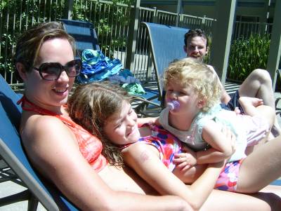Poolside Shreelakah and Maxwell enjoy watermelon while Kate gets loved to death.