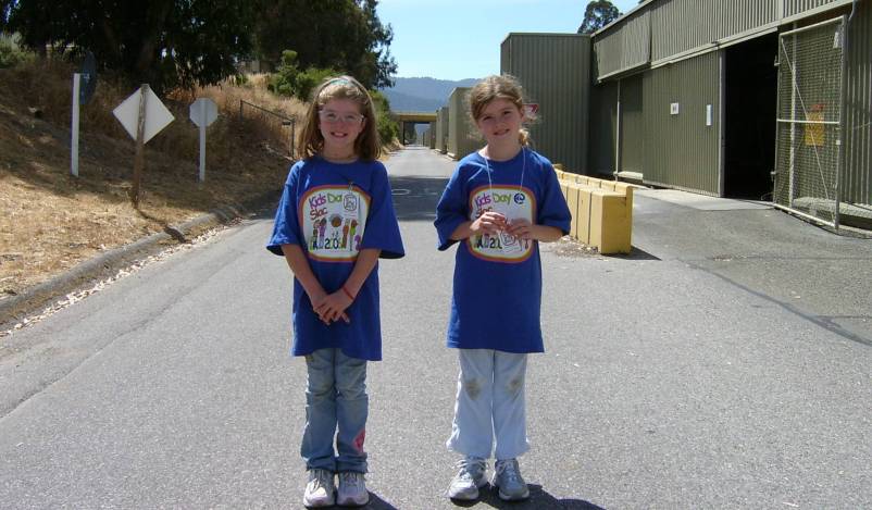 After lunch the girls learned about pulleys and shot off rockets on the lawn. I met them for ice cream in the afternoon. They exchanged phone numbers with their new friends and we headed off for the accelerator tour the girls had been so looking forward to. We started at the LINAC, where the electrons and positrons are accelerated to speeds near that of light before being dumping into the PEP-II ring. Then it was off to the main control center (MCC), where the accelerated particles are steared toward various detectors, including BaBar. Brittan said it "looks like a space ship with all the computers". Next we went down to the pit to see the old SLD and MARK-IV detectors so the girls could get a better handle on the scale of particle detectors since BaBar in currently running and thus unaccessable. The girls were rather disappointed by this, but c'est la vive. In IR-2 we met some of my fellow BaBarians, but the girls were unimpressed by the control room after seeing MCC. One can only tour so much complex equipment in a single day...