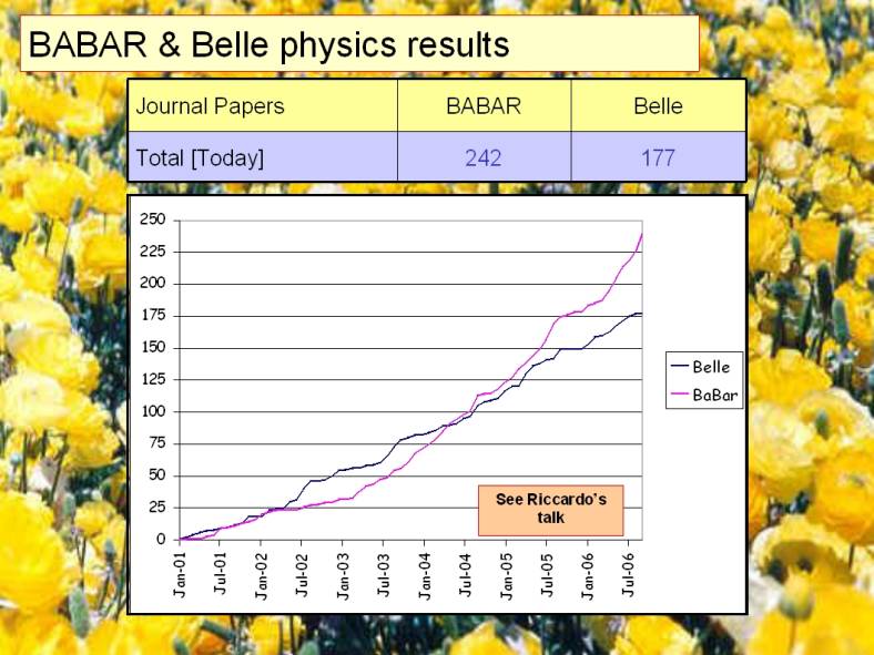 For a long time BaBar has been dogged by the competing Japanese experiment, Belle, which has recorded quite a bit more data than BaBar. In physics quality is more important than quantity though, and a good way to measure the quality of a dataset is in the number of publications resulting from it. Here we have reason to crow...