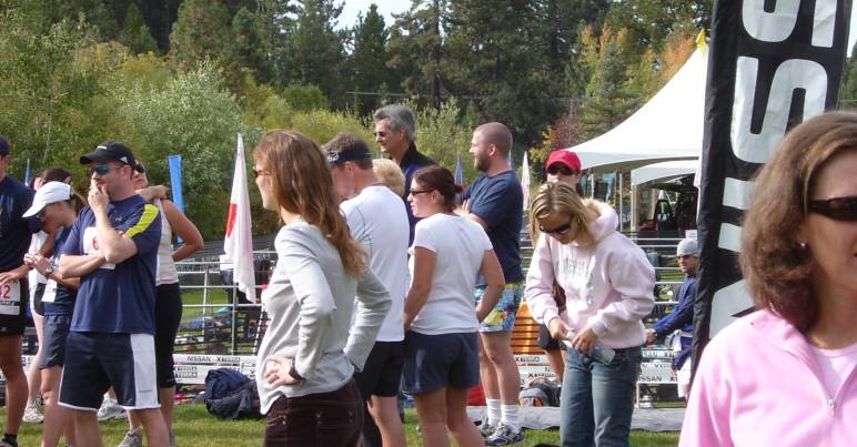 Lake Tahoe is over 6000 feet above sea level. Sunnyvale, where we live, is approximately at sea level. This made breathing a little rough, especially since I skipped training for two weeks around the start of the month to let my knee heal after pulling the muscles in it. My finish time of 30:28 was still rather poor despite these mitigating factors. Bob, who was once a serious distance runner, has been a fount of advice though, and he and Dell came along to cheer me on this morning. It's turned out to be a hot one, so after lunch we're heading down to the lake.