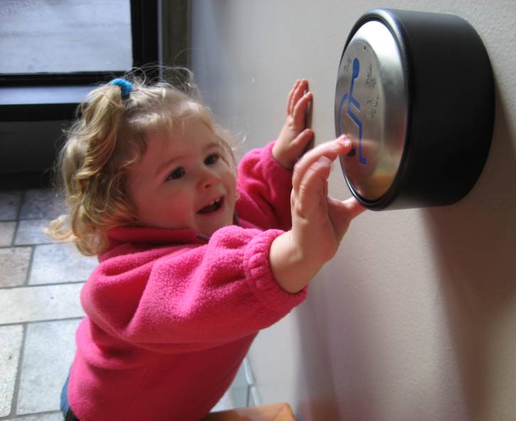 Zara pretends to be handicapped at the Monterey Aquarium.
